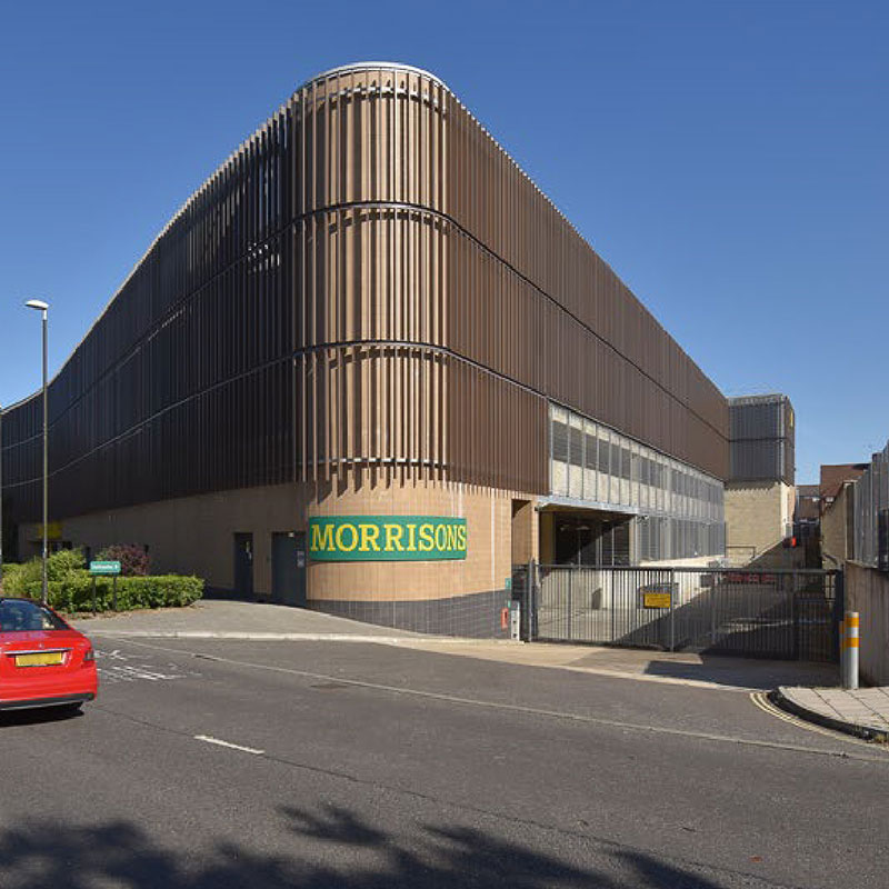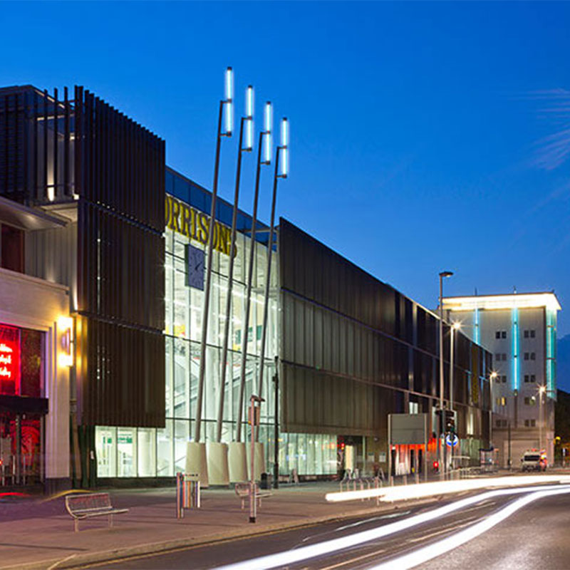 A mixed commercial building constructed in 2013/14 comprising a supermarket, 110 bedroom hotel, restaurant units and a 2 level multi storey car park.